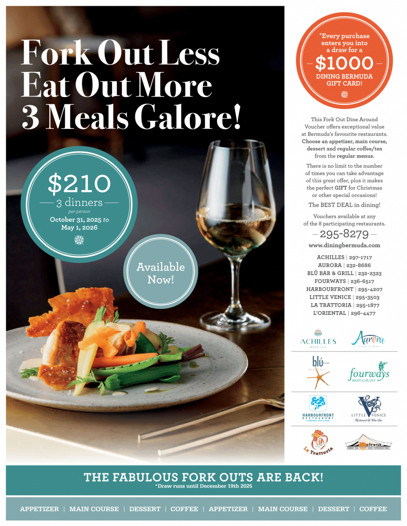 From now until Dec 19th every purchase enters you into a draw for a $1000 Dining Bermuda gift card!